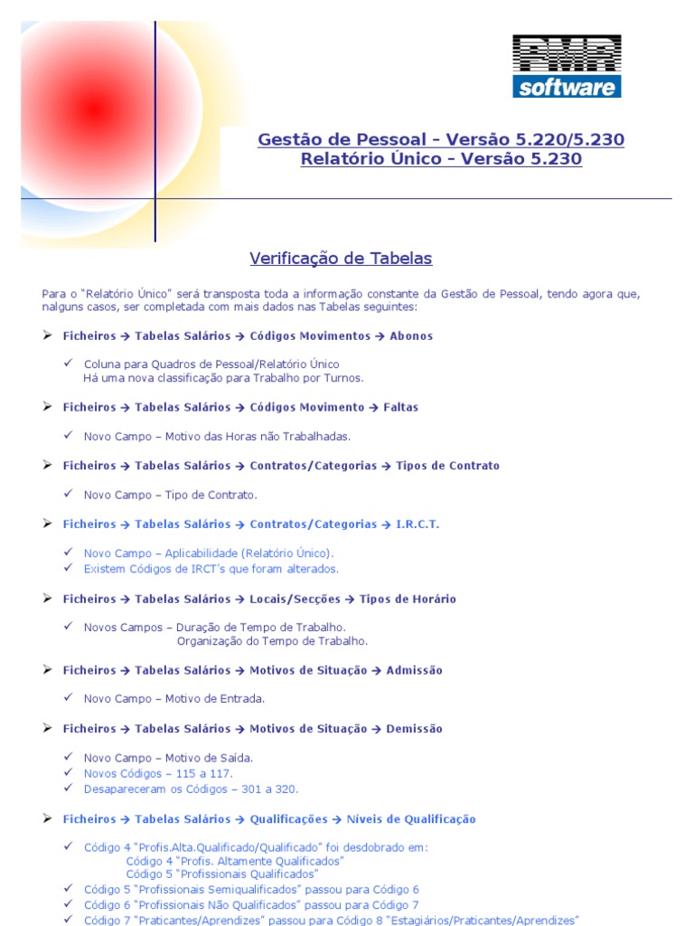 Chamamos a ateno que esta converso dos Cdigos, no dispensa uma conferncia posterior dos Utilizadores, uma vez que existem situaes que no podemos controlar automaticamente, como por exemplo: Um Cdigo antigo (6 dgitos) que se desdobra em vrios Cdigos novos (5 dgitos), em que s conseguimos fazer a correspondncia com o primeiro, que pode no ser o cdigo correcto. Nestas situaes para alm de corrigir o primeiro, se for caso disso, tero que verificar os seguintes. S feita a converso dos Cdigos, mantendo as Designaes que j constavam da Tabela, uma vez que a nvel da Validao do Suporte Magntico s o Cdigo validado. Depois de efectuado o preenchimento destes novos campos nas Tabelas e no Ficheiro de Pessoal e da Formao Contnua, devero tambm verificar se as Tabelas que j eram obrigatrias para o preenchimento dos Quadros de Pessoal e do Balano Social se encontram preenchidas.