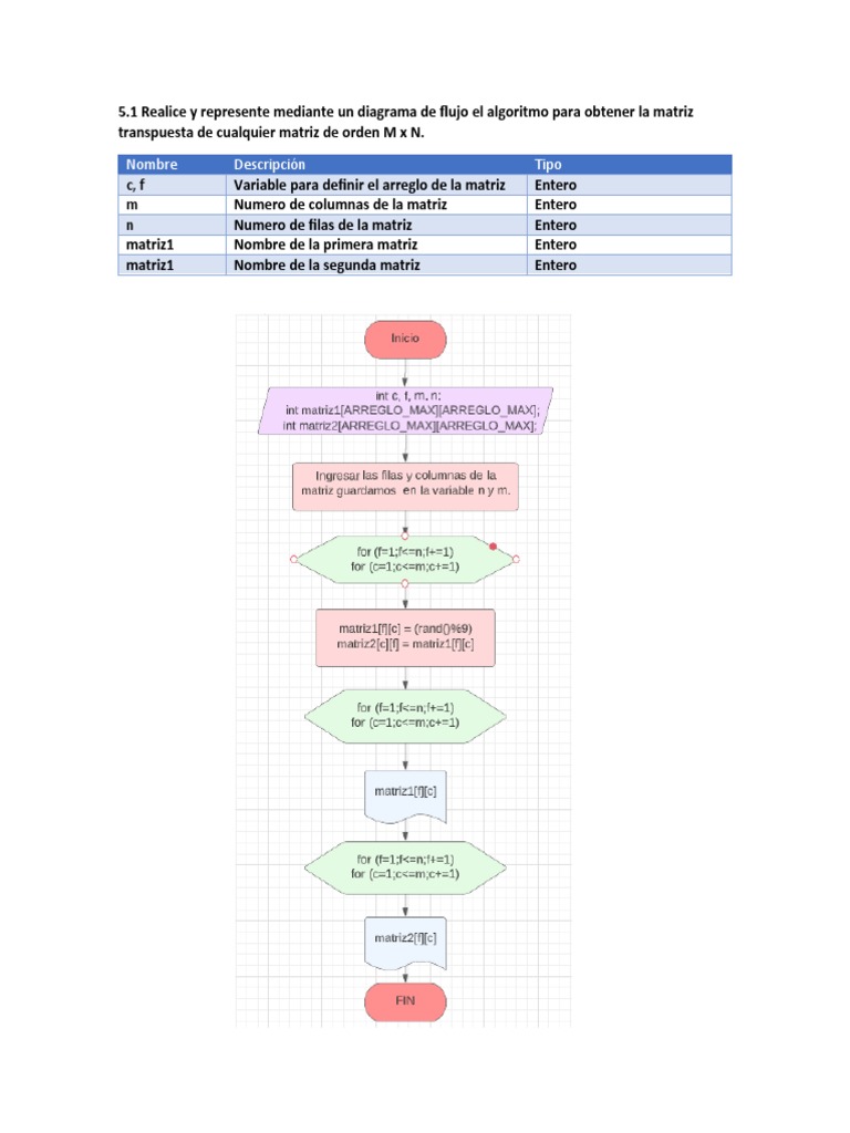 1 Realice y represente mediante un diagrama de flujo el algoritmo para obtener la matriz