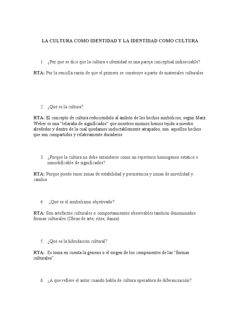 1. ¿Por qué se dice que la cultura e identidad es una pareja conceptual indisociable?