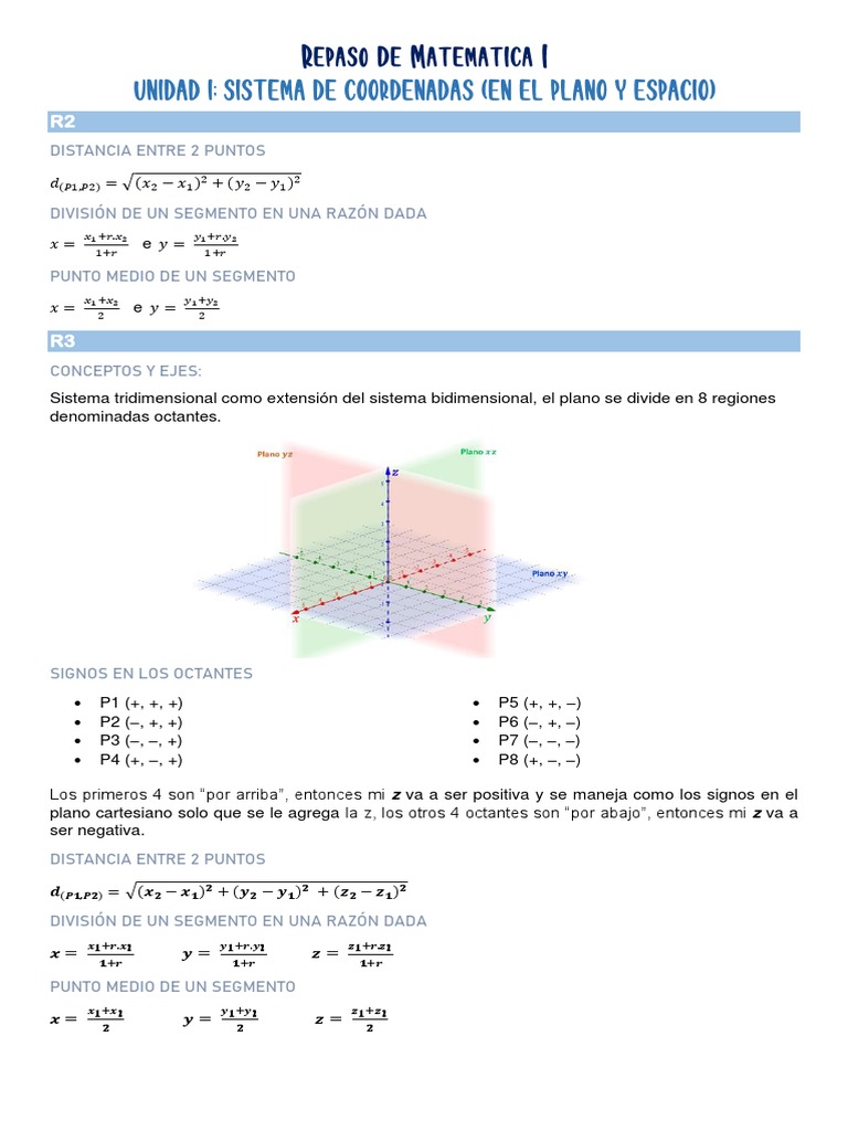 Sistema tridimensional como extensión del sistema bidimensional, el plano se divide en 8 regiones