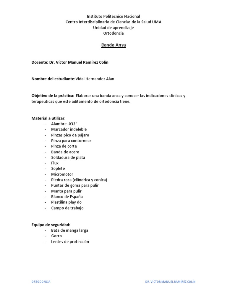 Objetivo de la práctica: Elaborar una banda ansa y conocer las indicaciones clínicas y