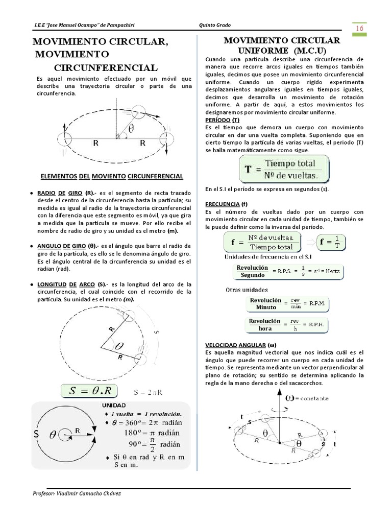 3. Periodo (T): Es el tiempo que demora un cuerpo con porque su velocidad angular permanece constante durante