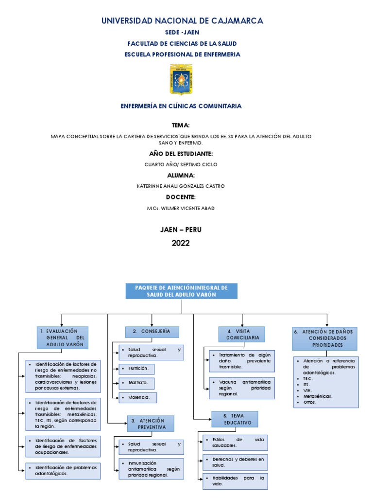 MAPA CONCEPTUAL SOBRE LA CARTERA DE SERVICIOS QUE BRINDA LOS EE. SS PARA LA ATENCIÓN DEL ADULTO