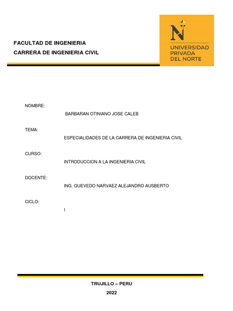 ESPECIALIDADES DE LA CARRERA DE INGENIERIA CIVIL