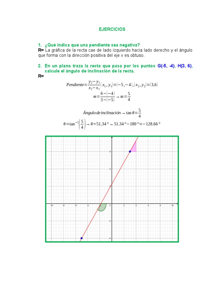 2. En un plano traza la recta que pasa por los puntos G(-5, -4), H(3, 6),