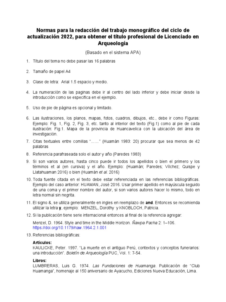 7. Citas textuales entre comillas “……” (Huamán 1983: 20) procurar que sea menos de 42
