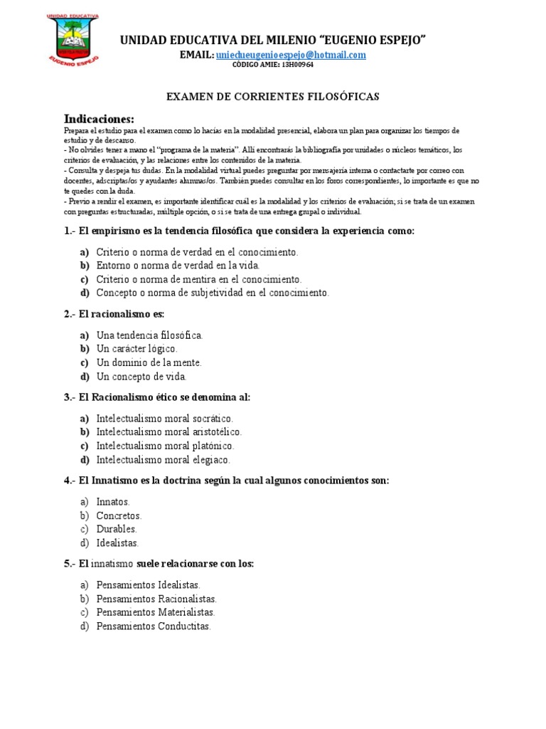 EXAMEN DE CORRIENTES FILOSÓFICAS