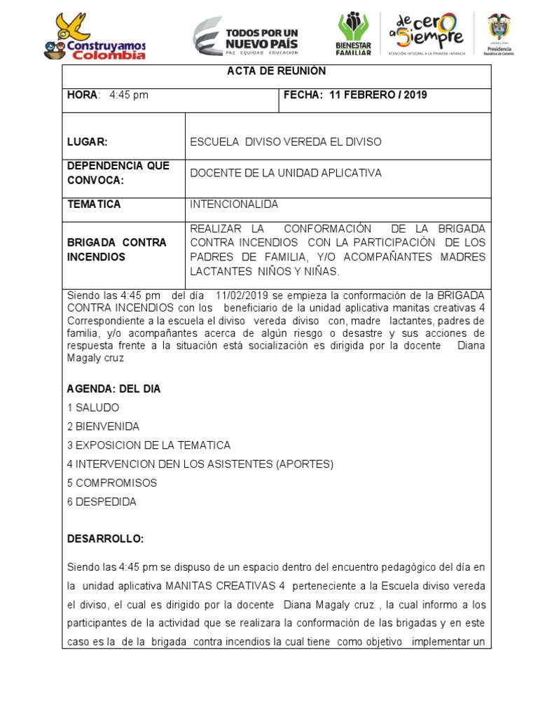 Para terminar la presente acta todos los padres de familia y/o acudientes firman en la
