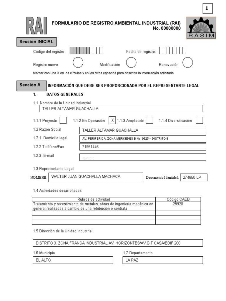FORMULARIO DE REGISTRO AMBIENTAL INDUSTRIAL (RAI)