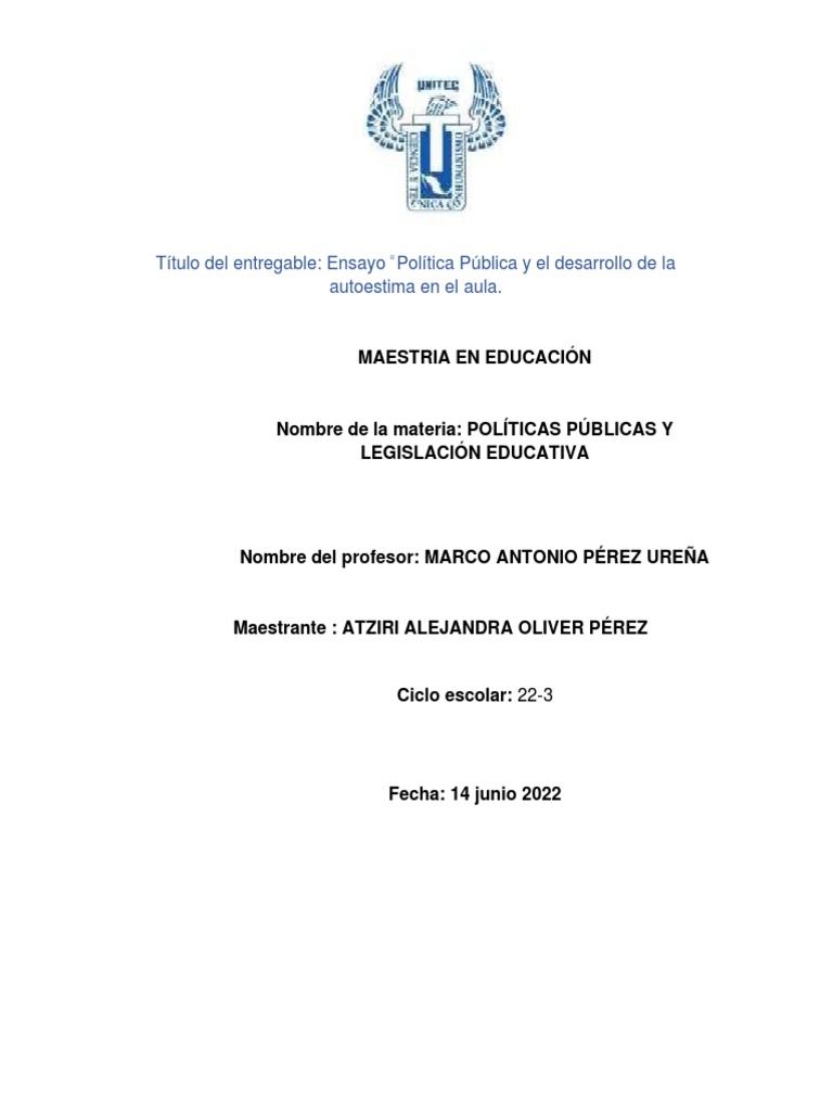 Título del entregable: Ensayo “Política Pública y el desarrollo de la