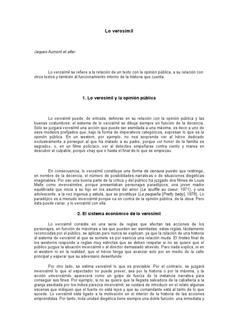Lo verosmil se refiere a la relacin de un texto con la opinin pblica, a su relacin con otros textos y tambin al funcionamiento interno de la historia que cuenta.