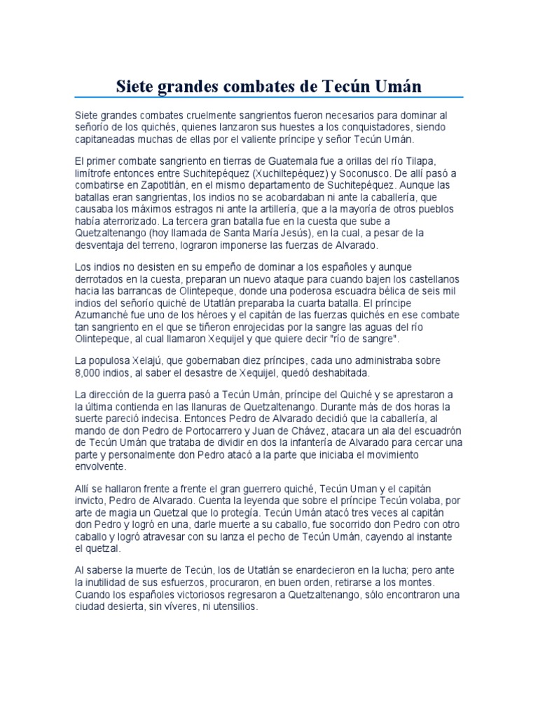 febrero de cada año Día de Homenaje a Tecún Umán, así como la construcción de