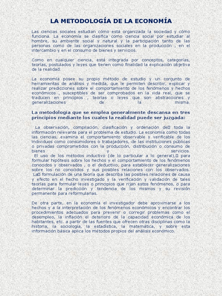 hechos y a la interpretación de los fenómenos económicos y encontrar los