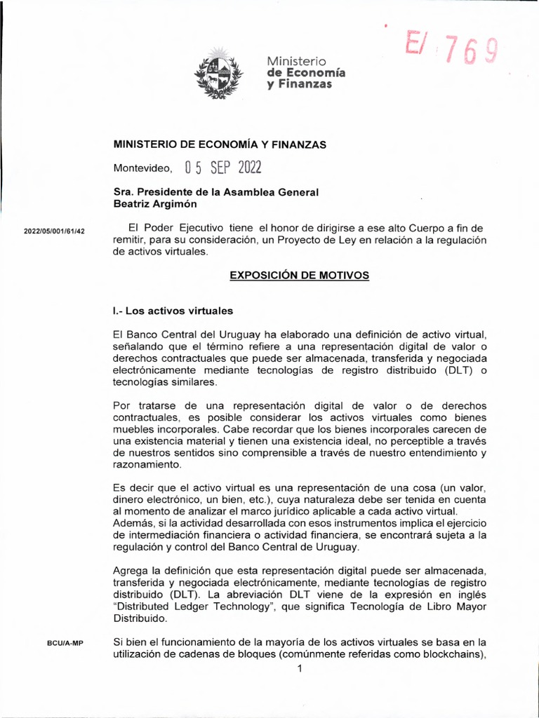 2022/ 05/ 001/61/42 El Poder Ejecutivo tiene el honor de dirigirse a ese alto Cuerpo a fin de