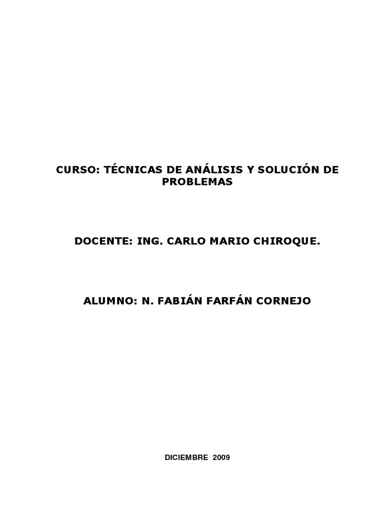 CURSO: TÉCNICAS DE ANÁLISIS Y SOLUCIÓN DE