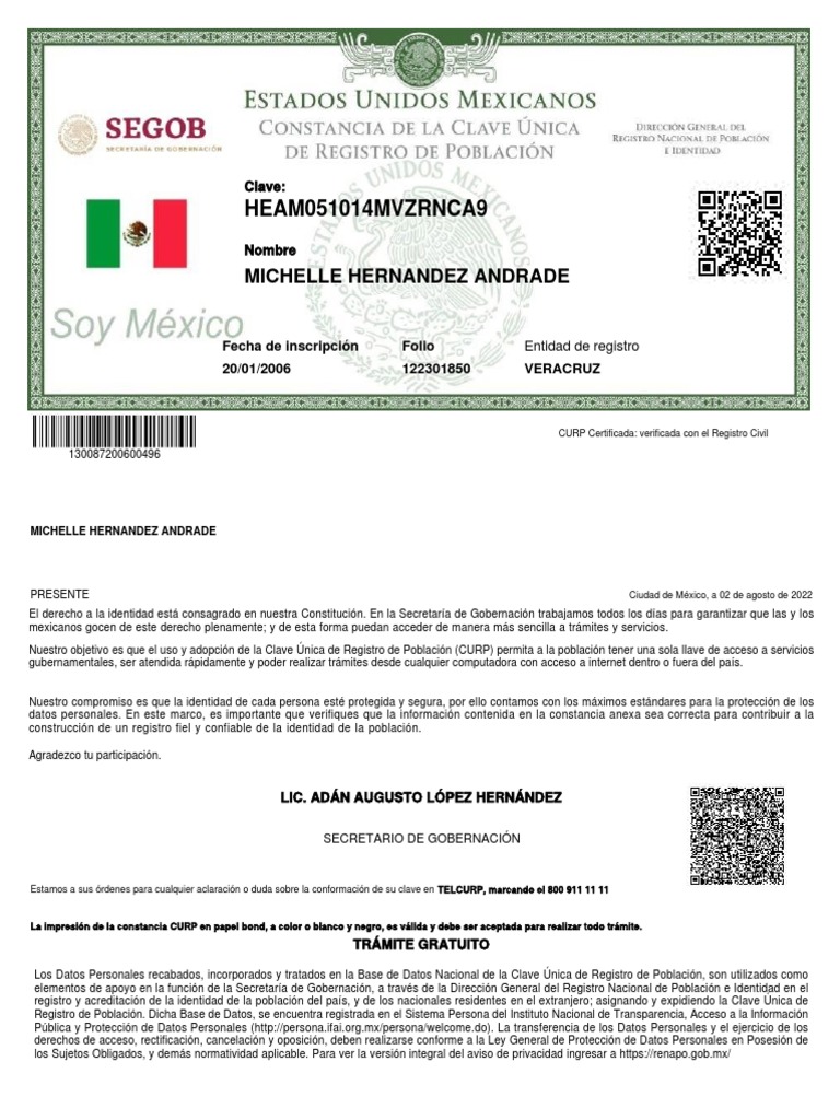 La impresión de la constancia CURP en papel bond, a color o blanco y negro, es válida y debe ser aceptada para realizar todo trámite.