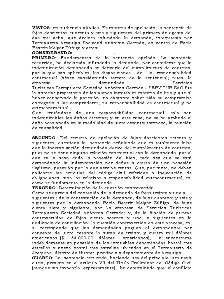 Terrapuerto Arequipa Sociedad Anónima Cerrada, en contra de Rocío