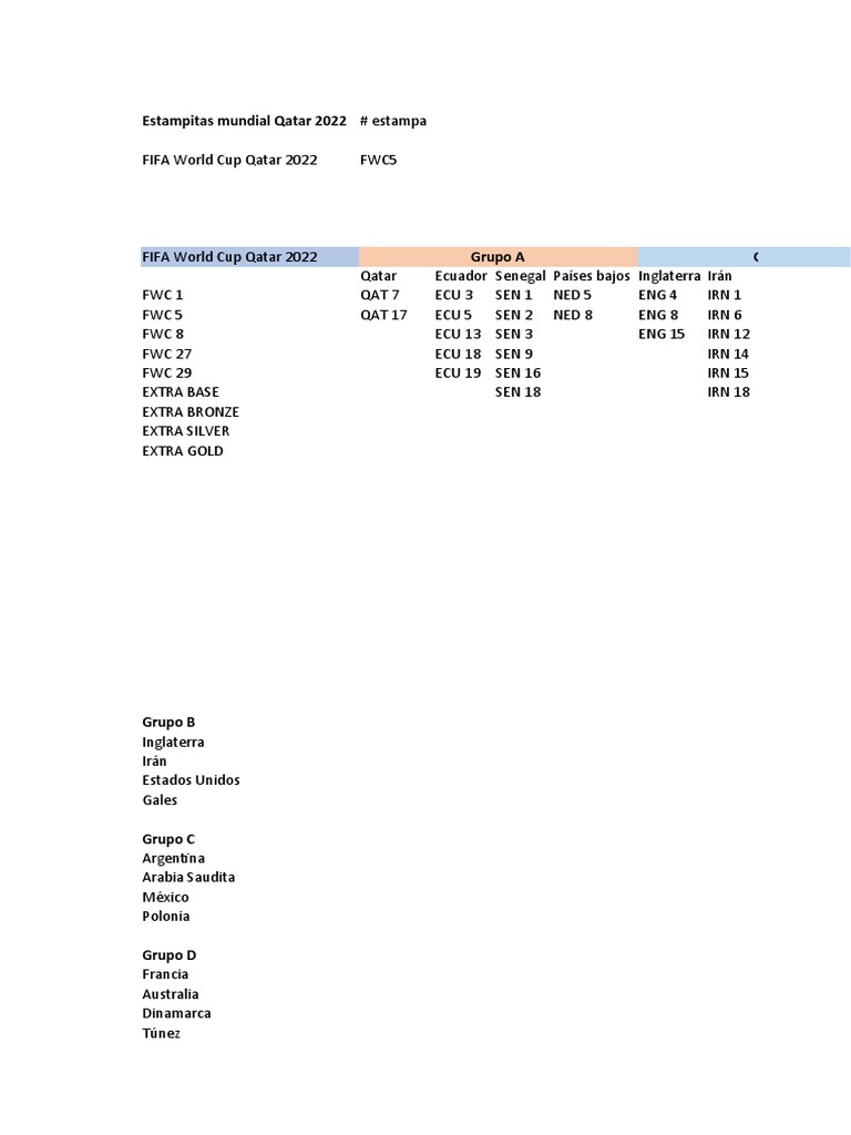 Qatar Ecuador Senegal Países bajos Inglaterra Irán