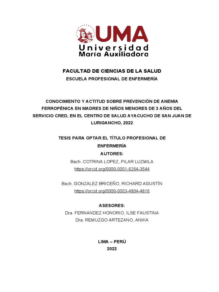 ferropénica en madres de niños menores de 3 años del servicio CRED, en el