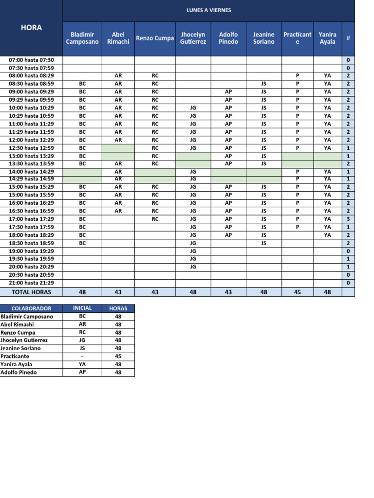 09:00 hasta 09:29 BC AR RC AP JS P YA 2