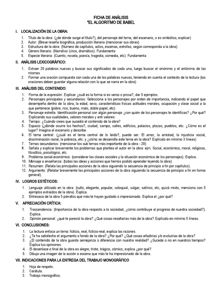 oraciones deben guardar alguna relación con lo que se narra en la obra)
