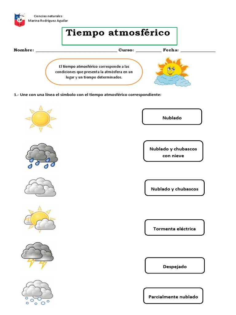 1.- Une con una línea el símbolo con el tiempo atmosférico correspondiente:
