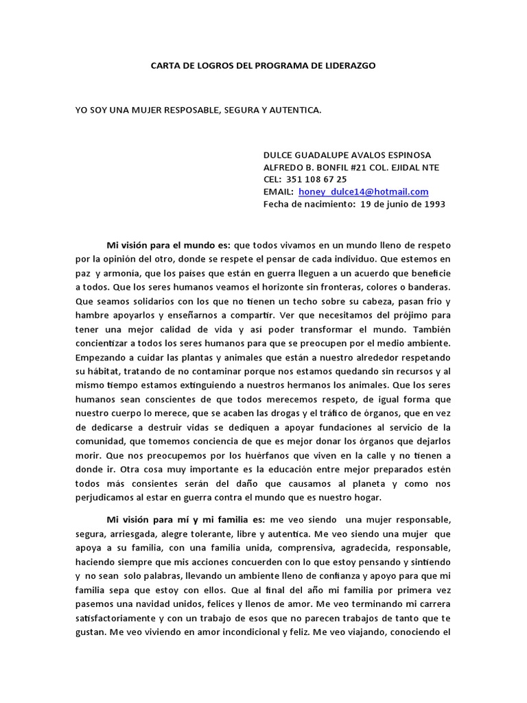 CARTA DE LOGROS DEL PROGRAMA DE LIDERAZGO