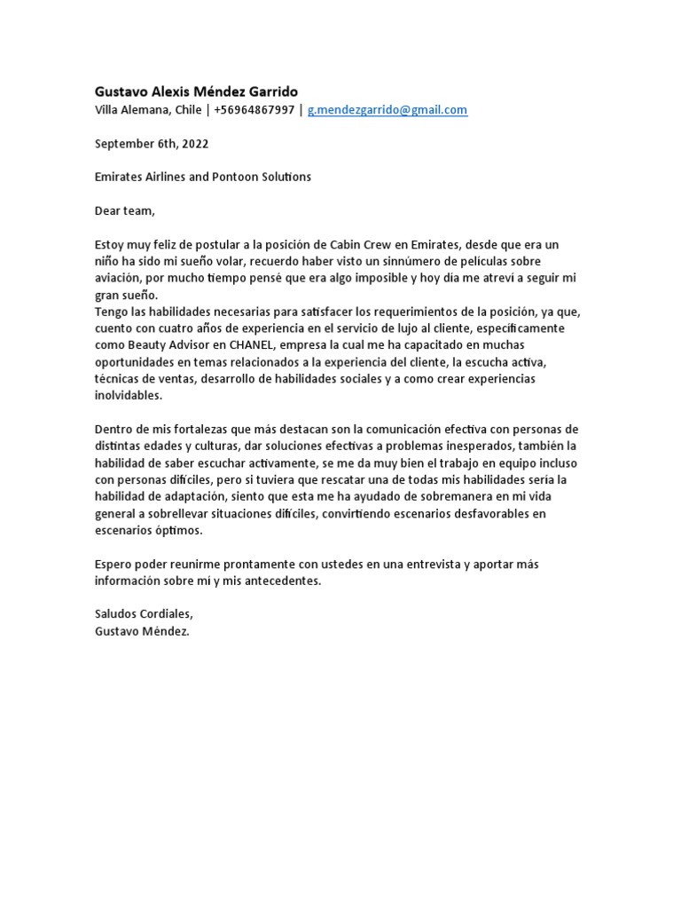 Estoy muy feliz de postular a la posición de Cabin Crew en Emirates, desde que era un