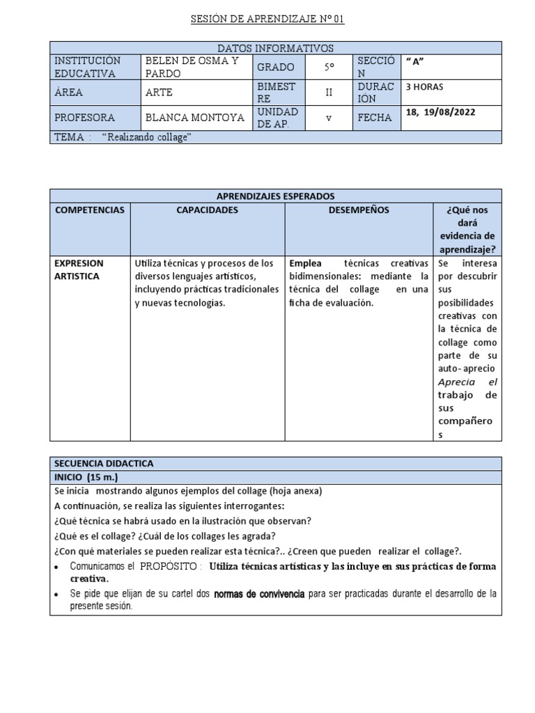 Se inicia mostrando algunos ejemplos del collage (hoja anexa)