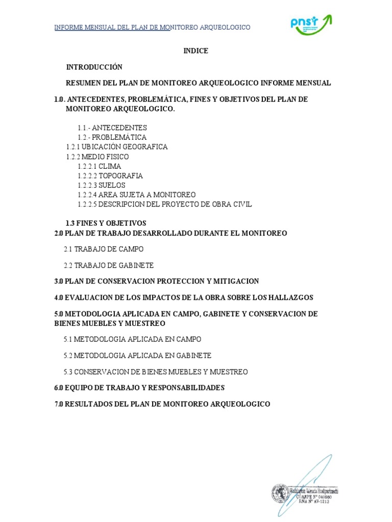 INFORME MENSUAL DEL PLAN DE MONITOREO ARQUEOLOGICO