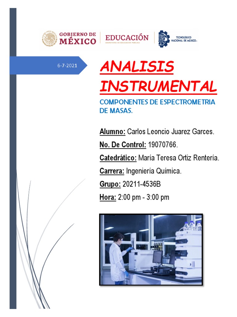 detector de un cromatógrafo de gases, en una técnica espectrómetro de masa.