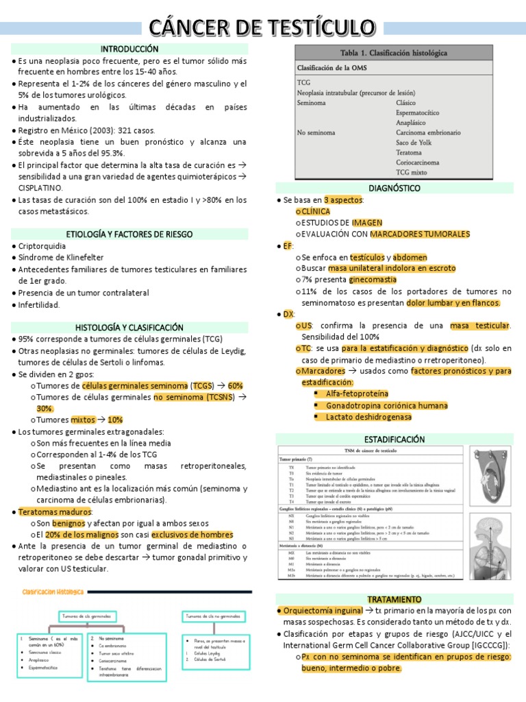 confina al testículo y su pronóstico es excelente. seminoma son de peor pronóstico.