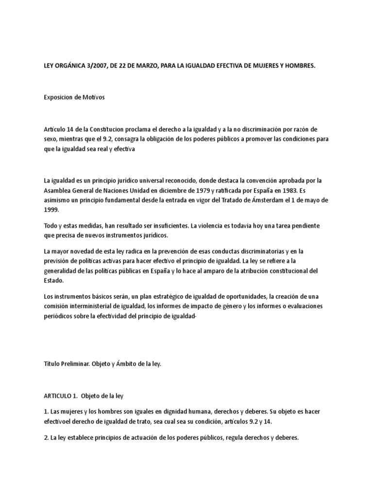 LEY ORGÁNICA 3/2007, DE 22 DE MARZO, PARA LA IGUALDAD EFECTIVA DE MUJERES Y HOMBRES.