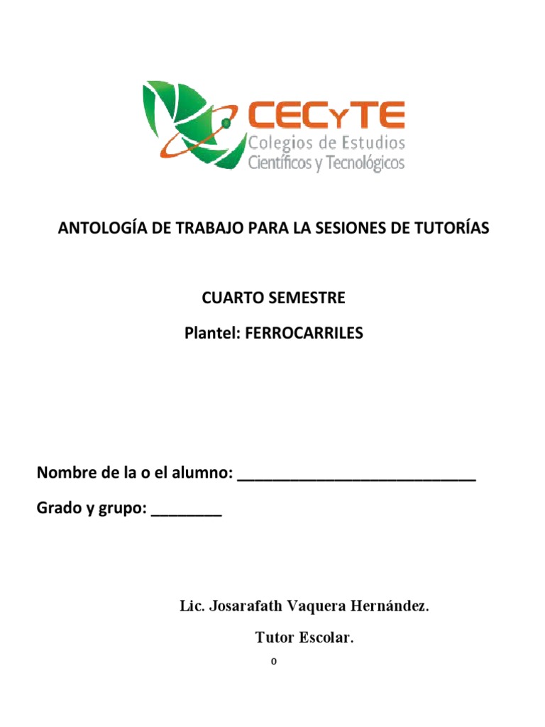 ANTOLOGÍA DE TRABAJO PARA LA SESIONES DE TUTORÍAS
