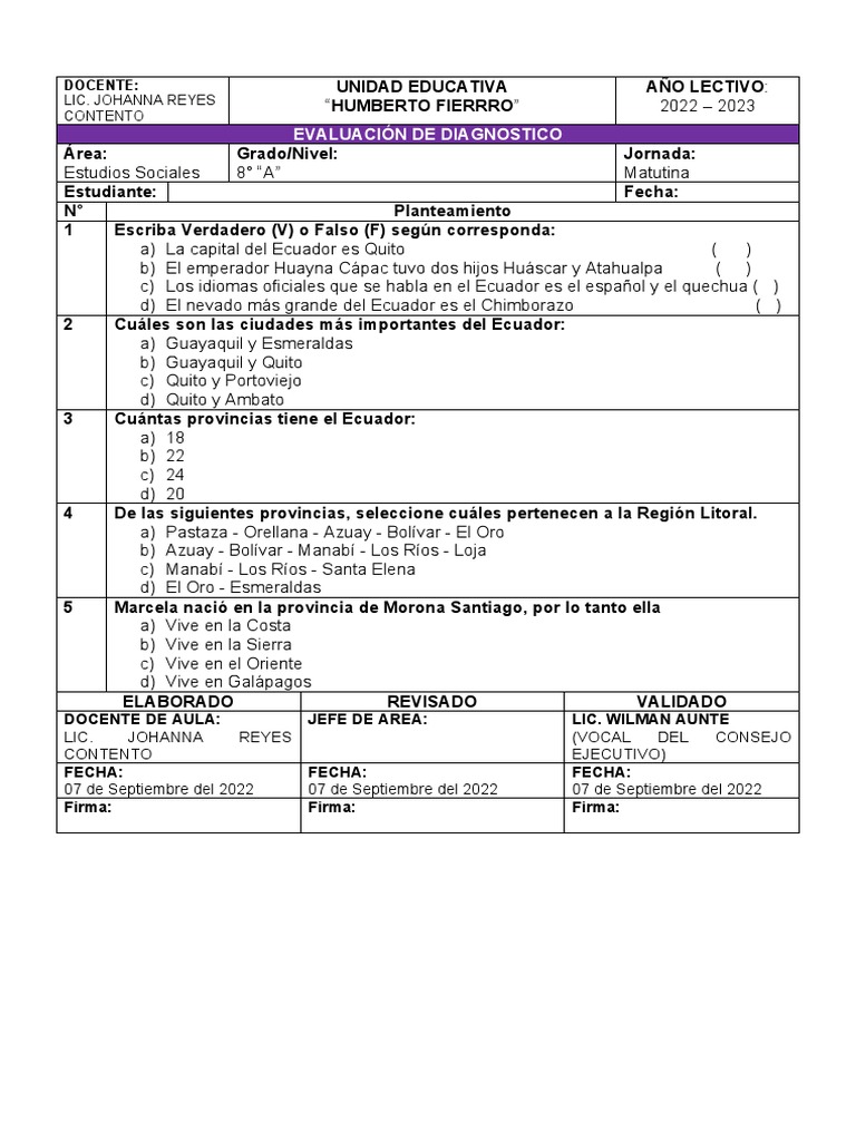 DOCENTE: UNIDAD EDUCATIVA AÑO LECTIVO: