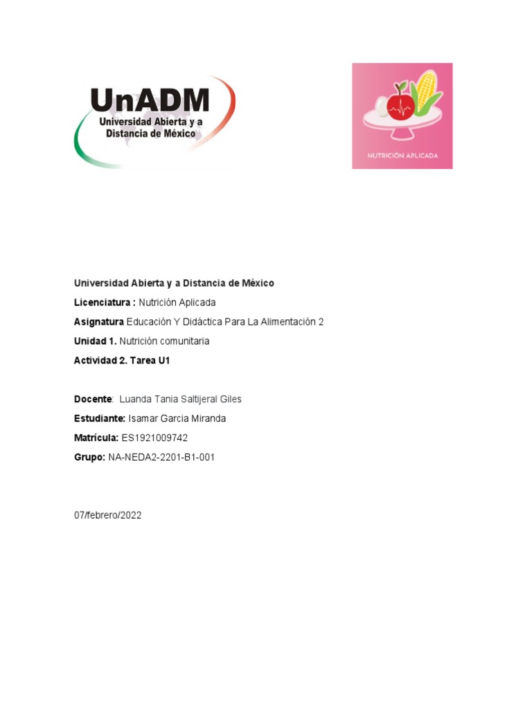 Asignatura Educación Y Didáctica Para La Alimentación 2