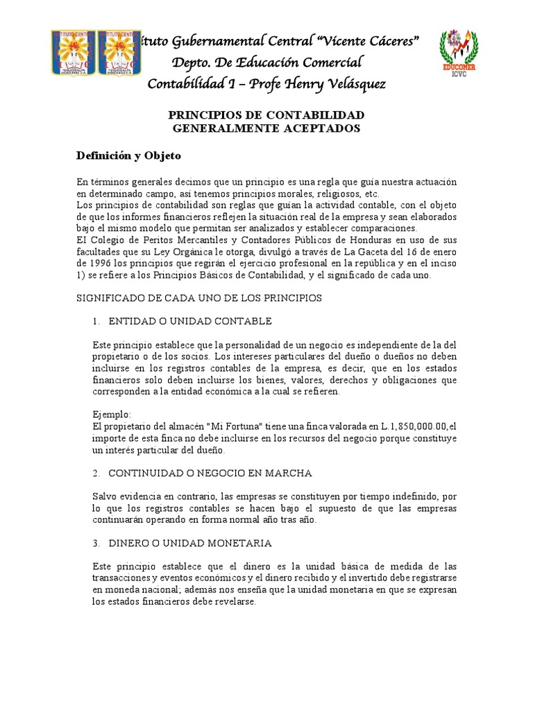 1) se refiere a los Principios Básicos de Contabilidad, y el significado de cada uno.