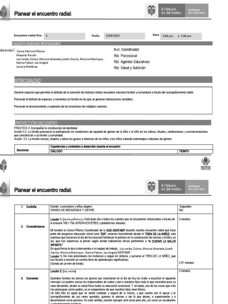 Encuentro radial Nro. 6 Fecha 5/09/2022 Hora 2:00 pm y 3:00 pm