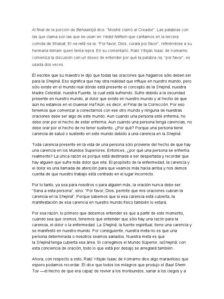 espiritual sanen a la Shejiná. Y en segundo lugar, quiero que también me sane a mí o