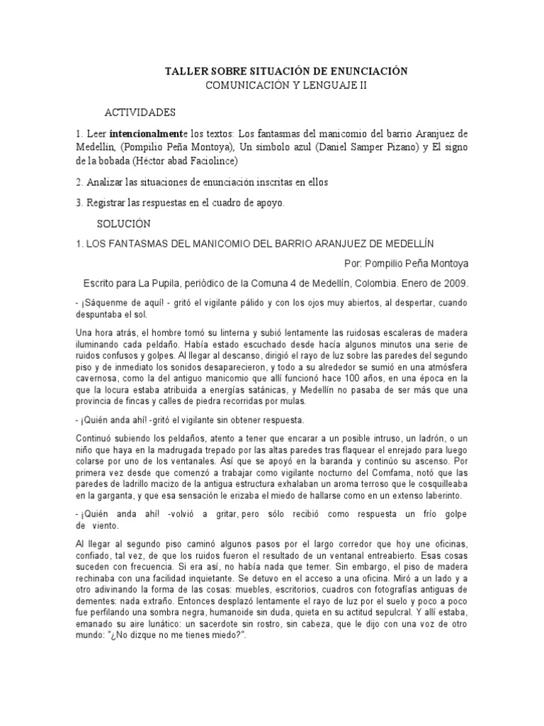 1. Leer intencionalmente los textos: Los fantasmas del manicomio del barrio Aranjuez de