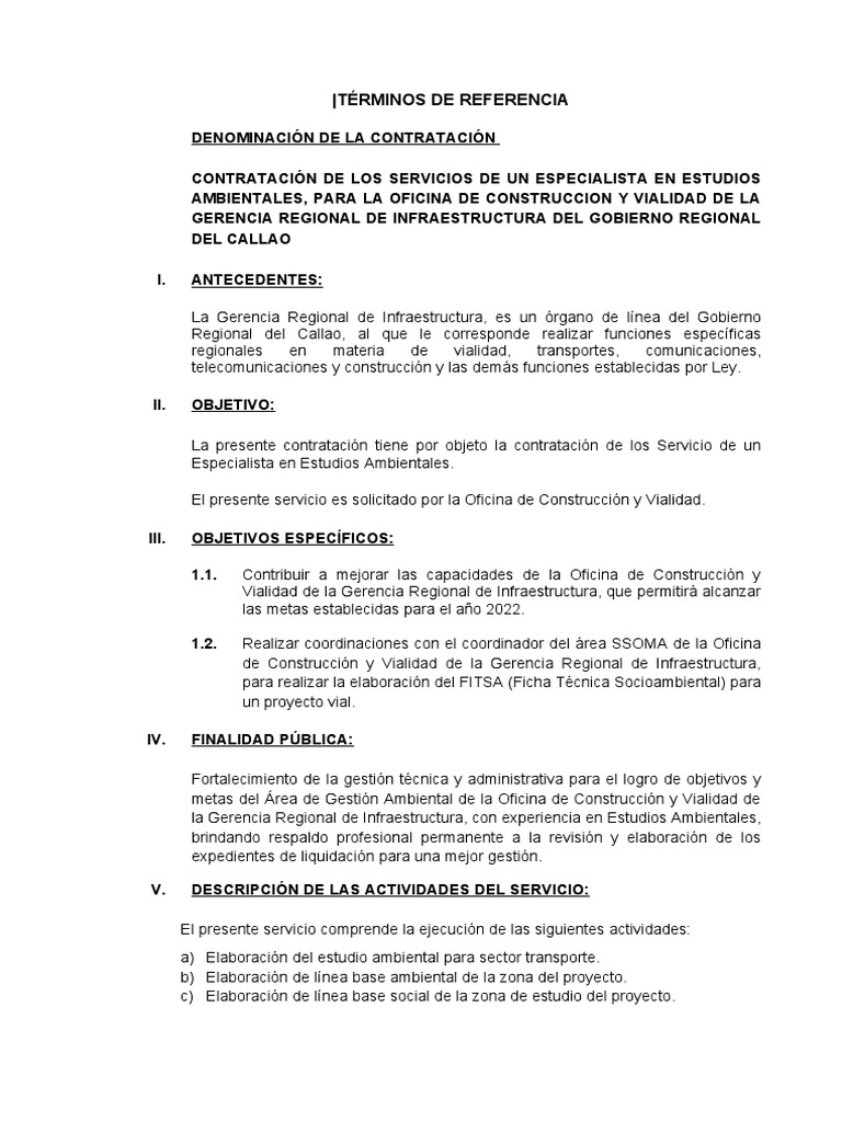la Gerencia Regional de Infraestructura, con experiencia en Estudios Ambientales,