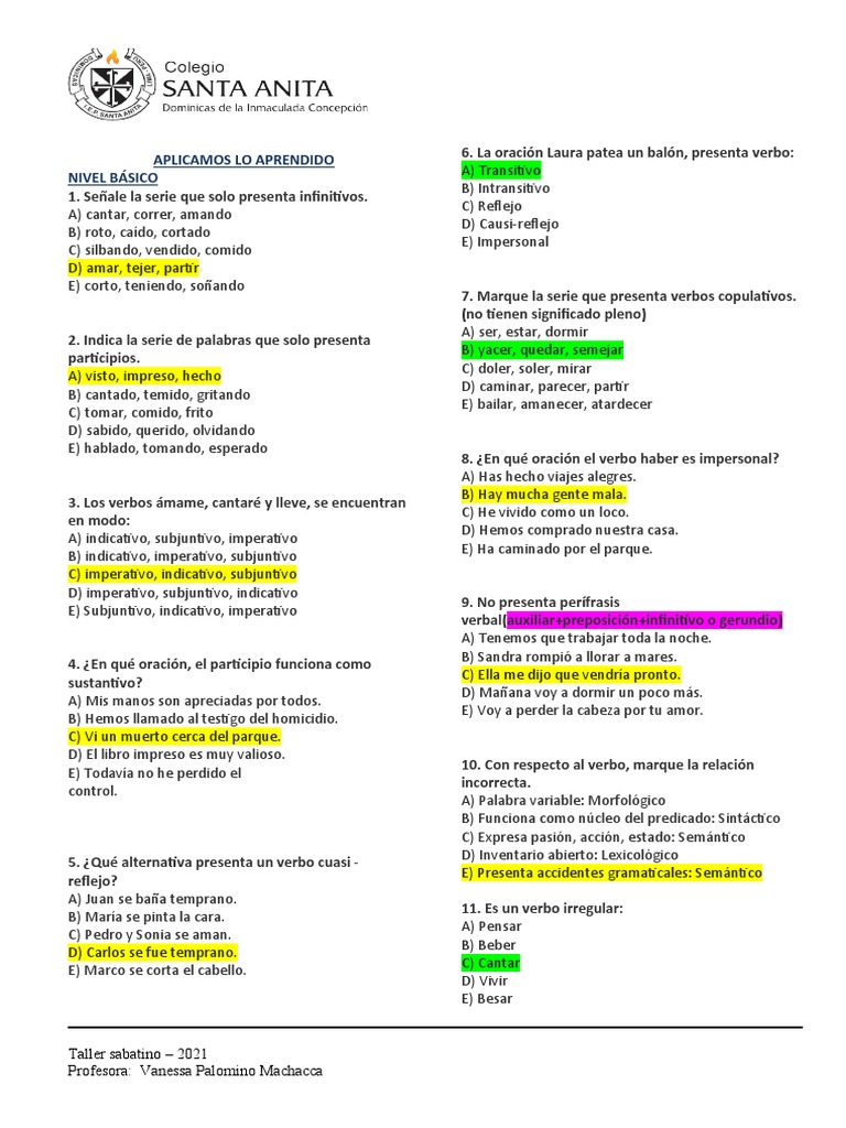 10. Con respecto al verbo, marque la relación