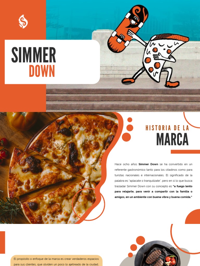 Específicamente a la marca Simmer Down son aqua y naranja, que reflejan un