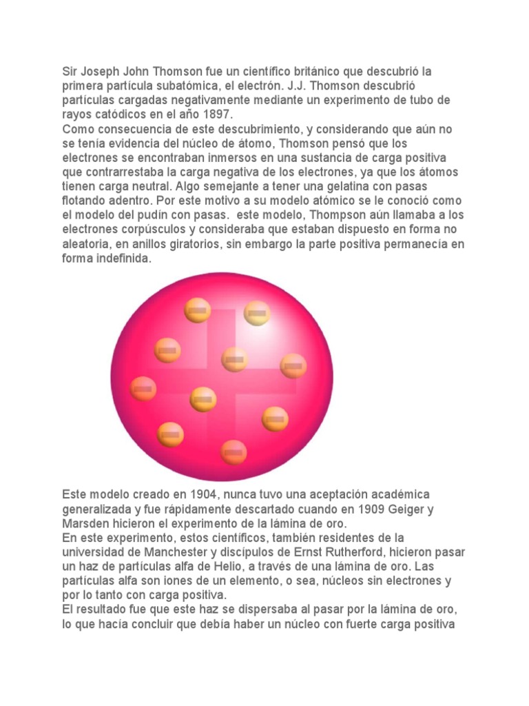 primera partícula subatómica, el electrón. J.J. Thomson descubrió