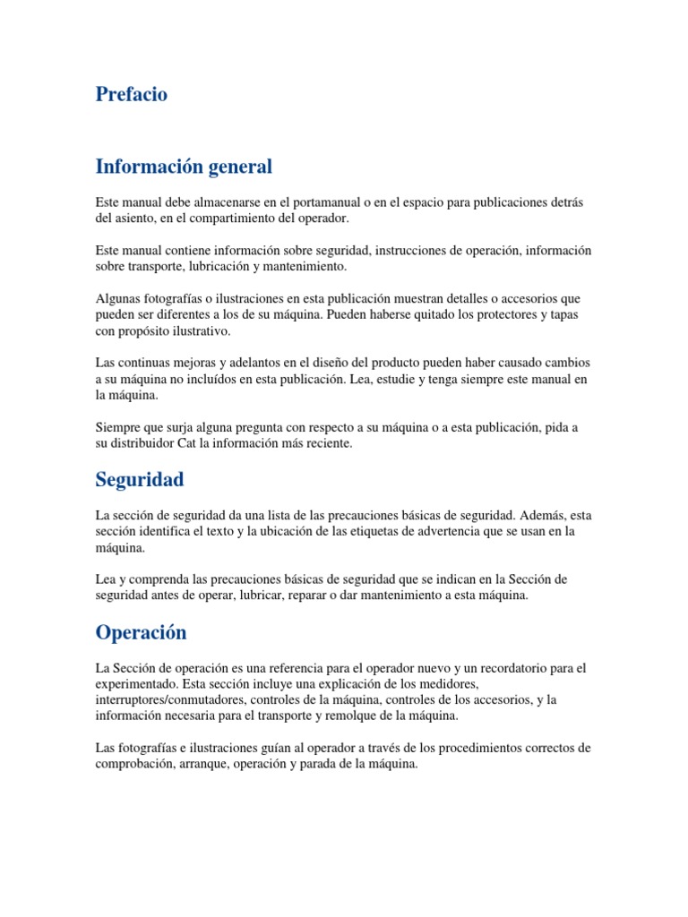 La Sección de operación es una referencia para el operador nuevo y un recordatorio para el
