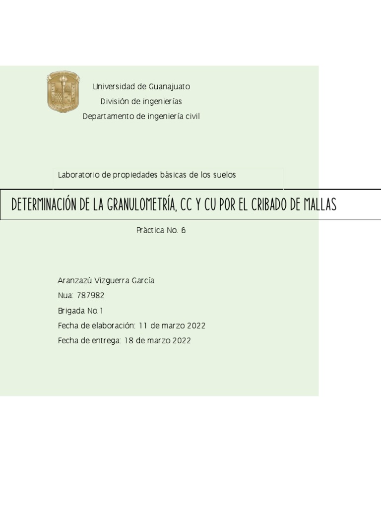 Determinación de la granulometría, Cc y Cu por el cribado de mallas