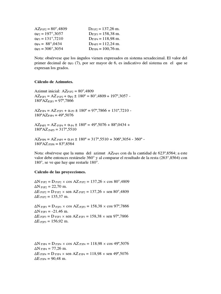 Nota: obsérvese que la suma del azimut AZP4P5 con da la cantidad de 623º,8564; a este