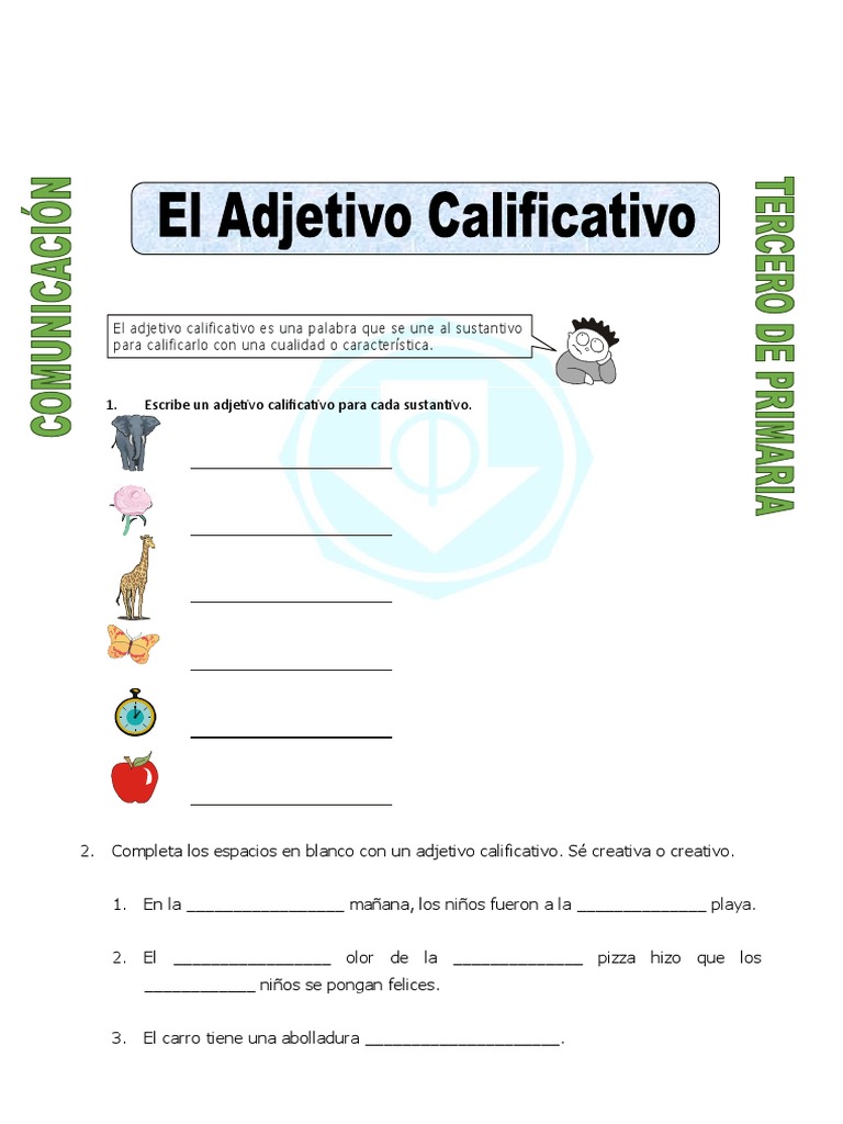 E l ad je tivo califica tivo e s u na p a la b ra q u e se u n e a l s u sta n tivo