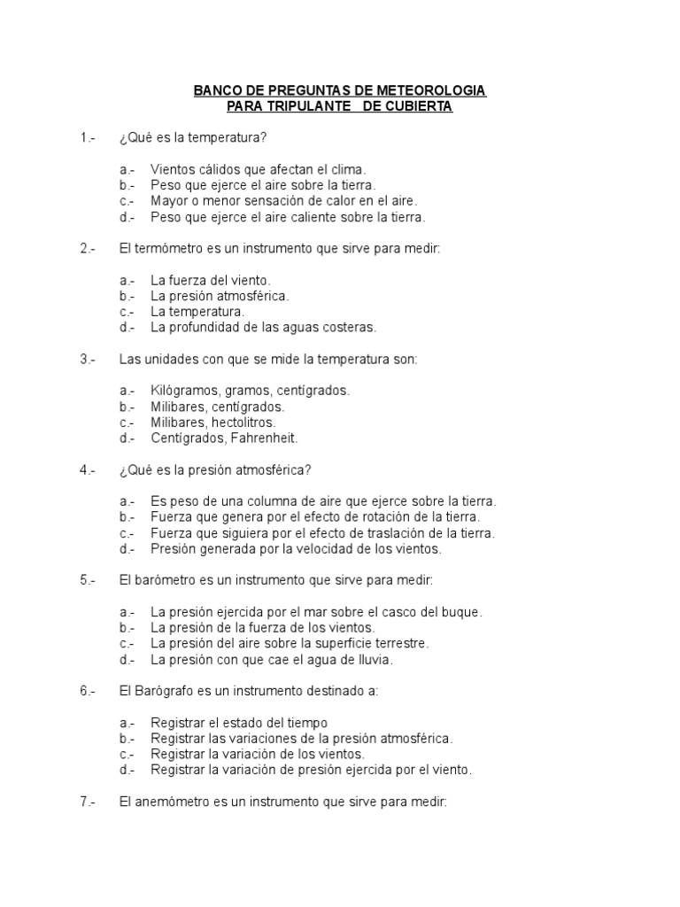 BANCO DE PREGUNTAS DE METEOROLOGIA