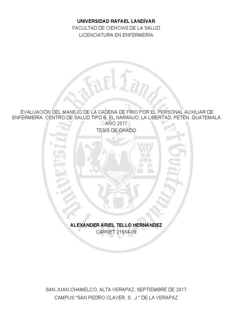 Guatemala año 2017. Con objetivo general de evaluar el manejo de la cadena de frío